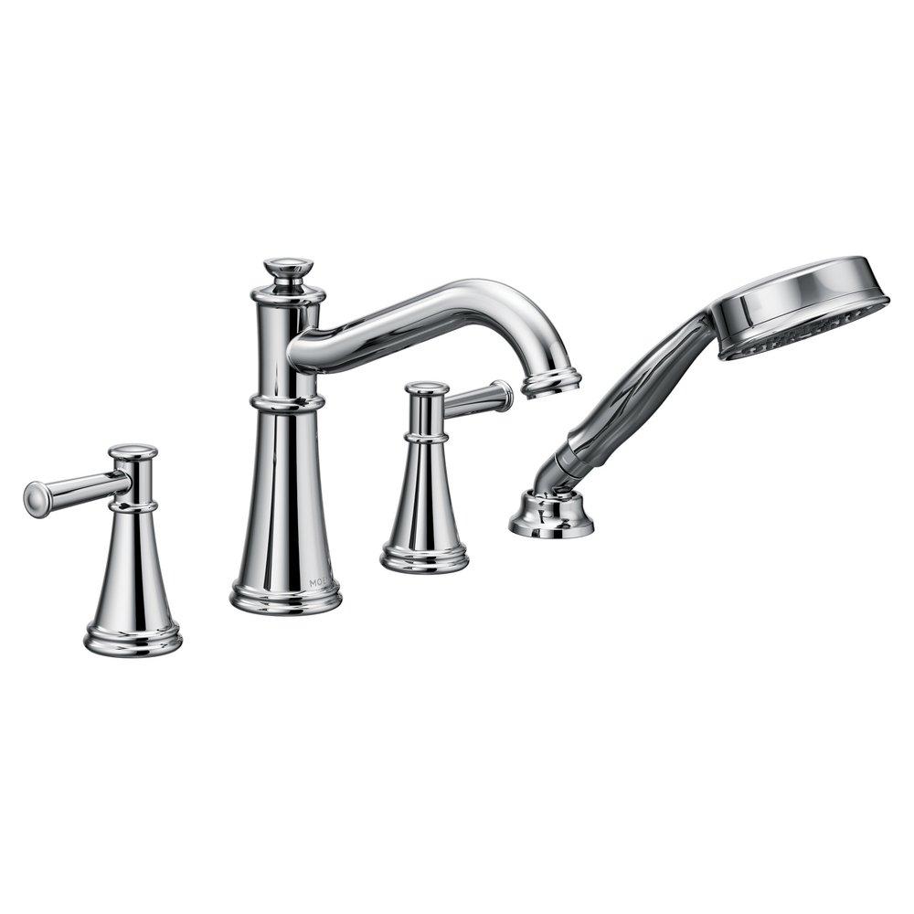 Moen T9024 Belfield Two-Handle Diverter Roman Tub Faucet Includes Hand Shower, Valve Required, Chrome