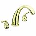 With its classic styling, this MOEN Monticello 2-Handle Deck-Mount Roman Tub Faucet in Polished Brass is designed to add elegance and sophistication to your bathroom decor. The polished brass finish is designed to brighten your bath area. The high-arc spout has a 9 in. reach for greater clearance and the separate handle design for hot and cold water lets you adjust the water temperature more precisely for a more comfortable bathing experience. The deck-mount design with its adjustable on-center measurement means easier access to tub controls, as well as versatile faucet placement options.