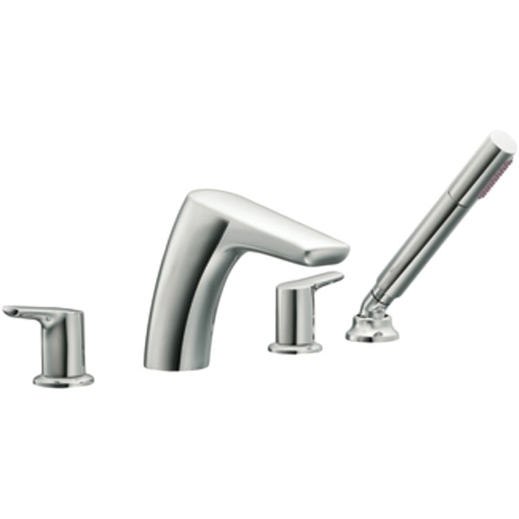 T987 Two Handle Low-Arc Roman Tub Faucet with Hand shower Trim Only from the Method Collection. The soft, modern styling of Method offers clean lines and a simple profile that contributes to the sleek, uncluttered look of a contemporary home. Available with a full suite of coordinating accessories to complete the upscale look. This trim kit requires MOEN valve 9792, 9793, 9796, or 9797 to complete installation.
