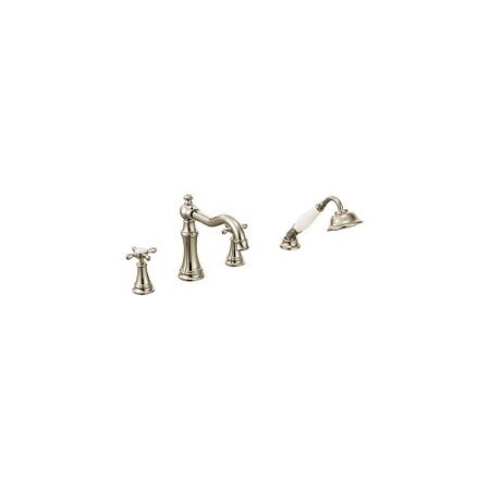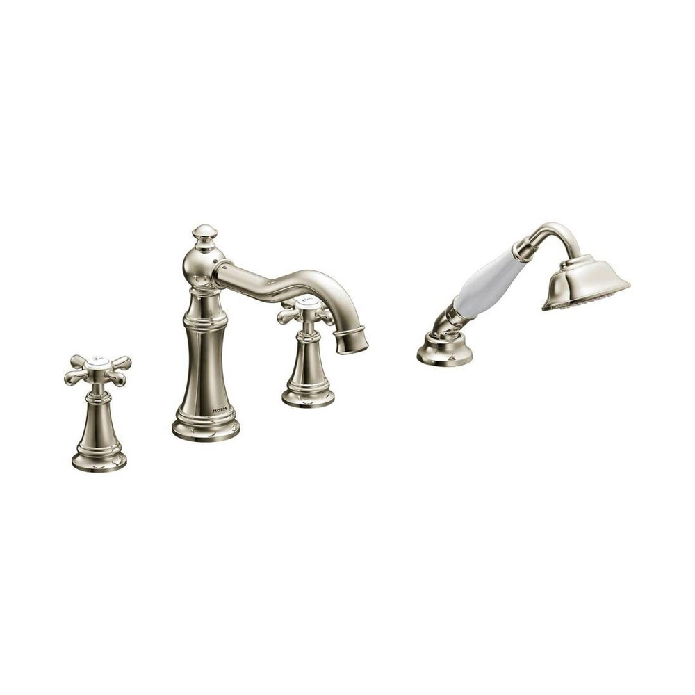 Moen TS21102NL Weymouth Two-Handle Diverter Roman Tub Faucet Includes Hand Shower, Valve Required, Polished Nickel