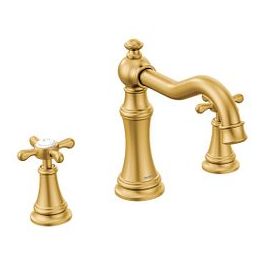 Moen TS22101BG Weymouth Two-Handle Roman Tub Faucet with Cross Handles Trim Kit, Valve Required, Brushed Gold