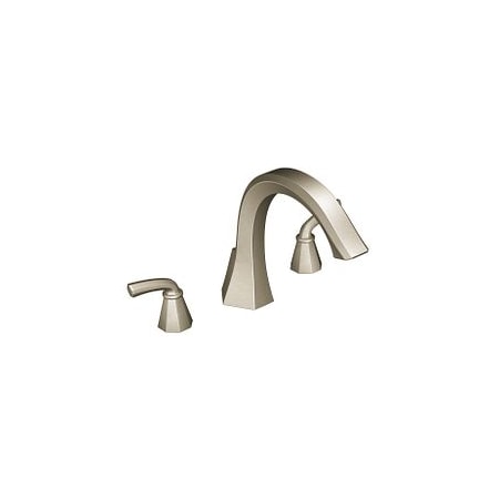 Moen TS243BN is part of the <b>Felicity</b> bath collection. Moen TS243BN has a Brushed Nickel finish. Moen TS243BN is a roman tub trim 3-hole 8 - 16 installation. Roman Tub faucet is a deck-mount with 8 7/8 long and 9 3/8 high spout and a full 4 13/16 from deck to aerator. Moen TS243BN Roman Tub trim fits the M-Pact common valve system and requires Moens 4992 valve to make this faucet complete. Valve sold separately. Moen TS243BN is part of the Felicity bath collection with sweeping geometric forms that makes a bold statement and boasts a modern feel. Moen TS243BN is approved by ADA. Brushed Nickel has a Lifeshine finish guarantee from Moen and provides style and durability. Moen TS243BN metal lever handle meets all requirements of <b>ADA</b> CSA B125.1, ASME A112.18.1. Limited Lifetime Warranty..