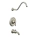 Elegant, traditional design details and distinctive finishing touches present a sense of uncommon luxury in the Weymouth collection. Distinctive accents include porcelain inlays that feature Euro influenced decorative script and signature styling elements. This brushed nickel posi-temp tub/shower was built to last by MOEN. Designed for use in your bath. This product requires MOEN valve(s) 2510, 2520, 2570, 2580, or 2590 for faucet to function.