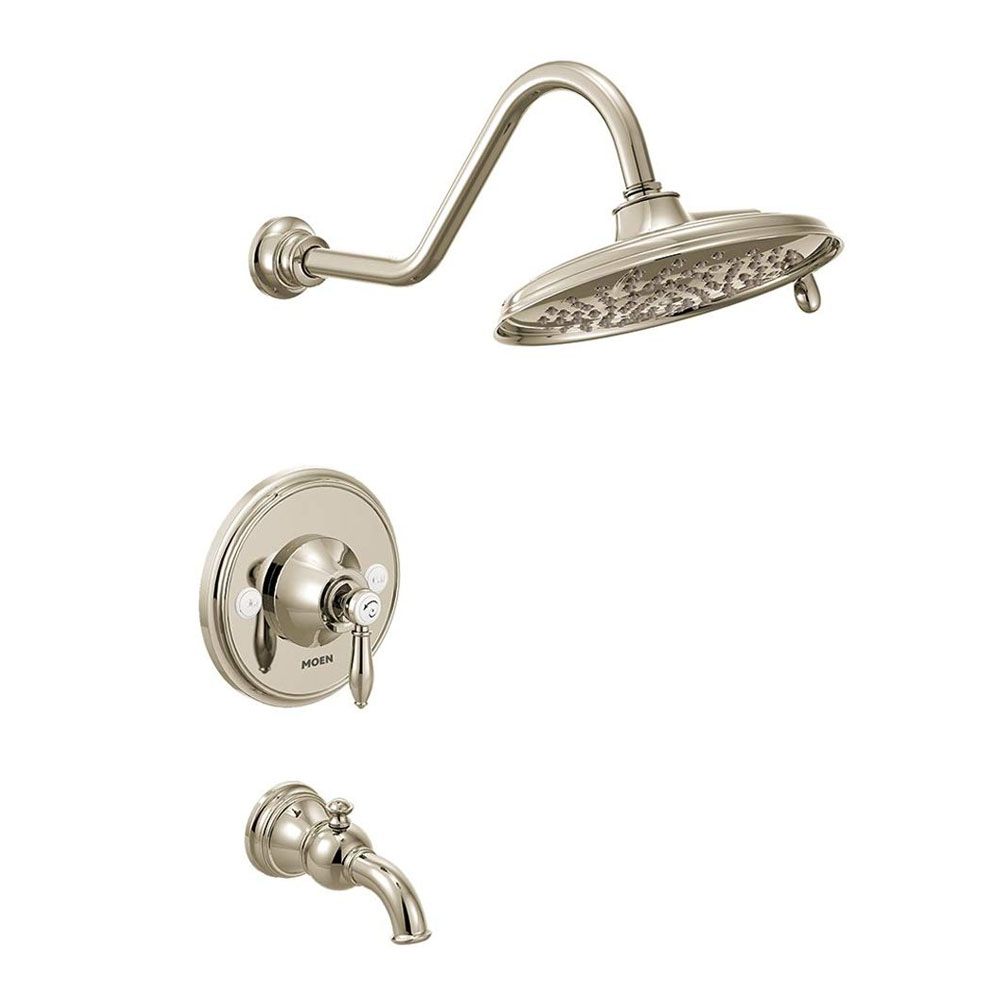 Moen TS32104NL Weymouth Posi-Temp Tub and Shower Trim Kit, Valve Required, including 9-Inch 2-Spray Rainshower, Polished Nickel