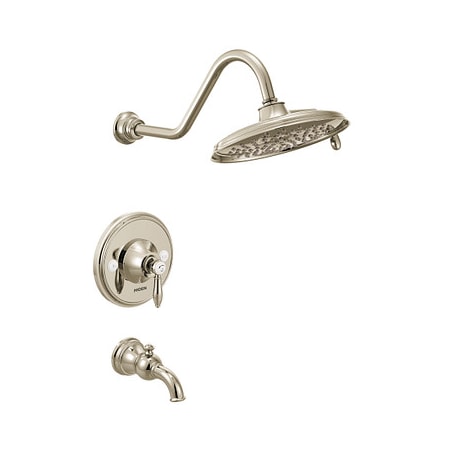 Moen Weymouth Nickel 1-Handle Bathtub and Shower Faucet Trim Kit with Rain Showerhead