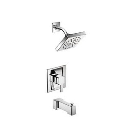 The 90-Degree Tub and Shower Faucet Moentrol Trim Kit from MOEN features right-angled design elements and crisply honed edges to put the finishing touch on your modern bathroom buildout. A square rain showerhead spanning 6 in. offers exceptional single-spray coverage, harnessing self-pressurizing MOEN Immersion technology to accelerate water flow. Leveraging the dual functionality of a compatible Moentrol valve, the single-handle faucet lets you adjust water volume and temperature to match your preferred flow and heat intensity. An innovative pressure-balancing feature in the valve helps the temperature remain steady even when other water sources in the home are triggered. Complementary of many decor styles, the mirror-like chrome finish offers high reflectivity for a gleaming appearance in your powder room. Part of the M-PACT common valve system, this set makes it simple to substitute the trim without tweaking the plumbing should your future style preference change. This kit requires MOEN valve 3510, 3520 or 3570 (sold separately) to complete installation.
