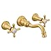 Buy this Moen Weymouth Brushed Gold Two-Handle, Wall-Mount Widespread Bathroom Faucet with Cross Handles, 1.2 GPM - TS42112BG online with PlumbersStock - quality Moen faucet supply.