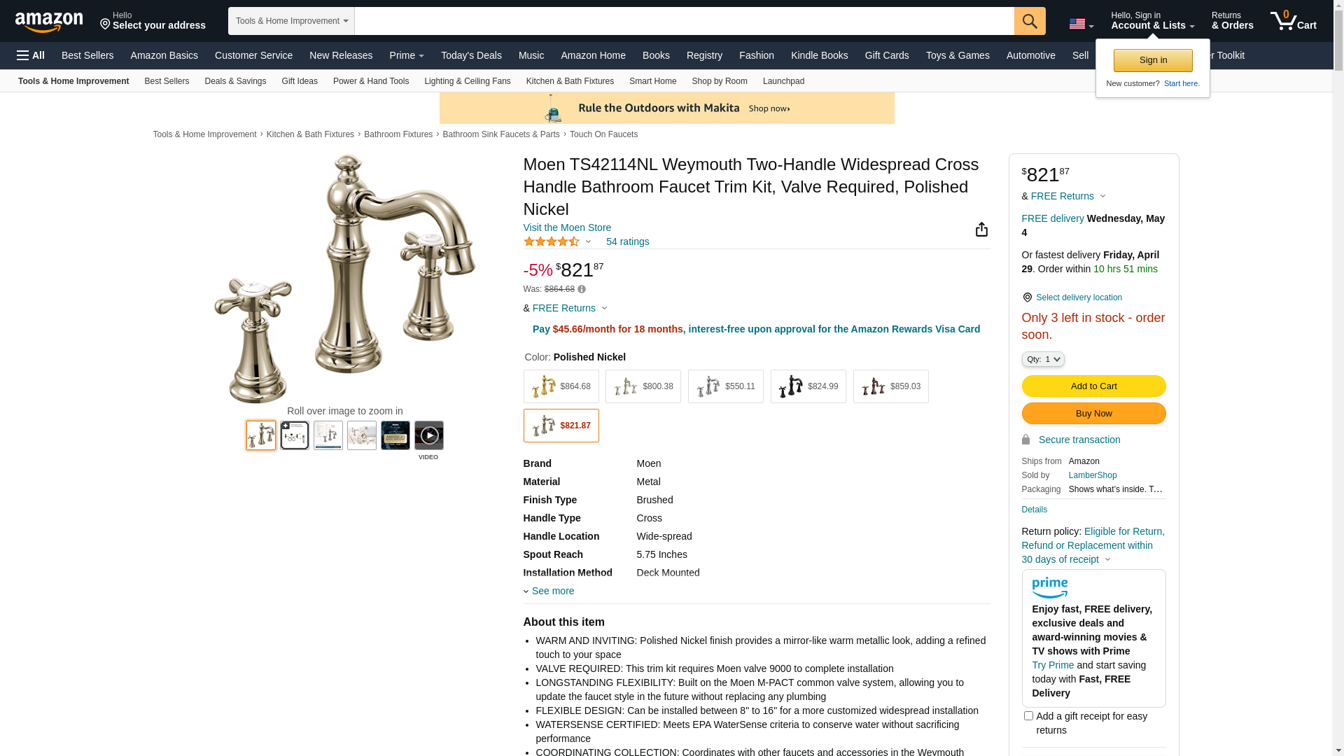 ![]() Bath1 | MOE_TS42114NL | 1 | 1 | 1 @ $900.64 | |