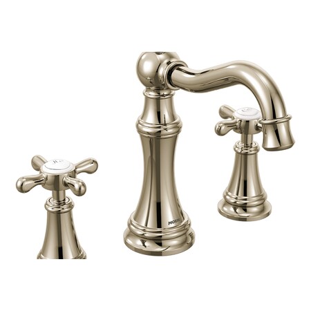 Moen TS42114NL Weymouth Two-Handle Widespread Cross Handle Bathroom Faucet Trim Kit, Valve Required, Polished Nickel