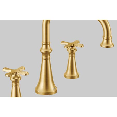 Moen TS44505BG Colinet Two Deck-Mount Roman Tub Faucet Trim with Cross Handles Valve Required, Brushed Gold