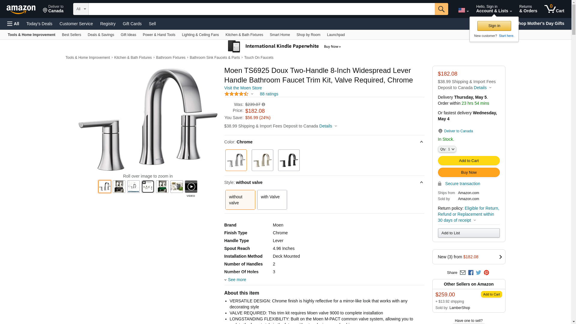 ![]() faucet-warehouse.com | TS6925 | 1 | -2 | 1 | 1 @ $307.20 |