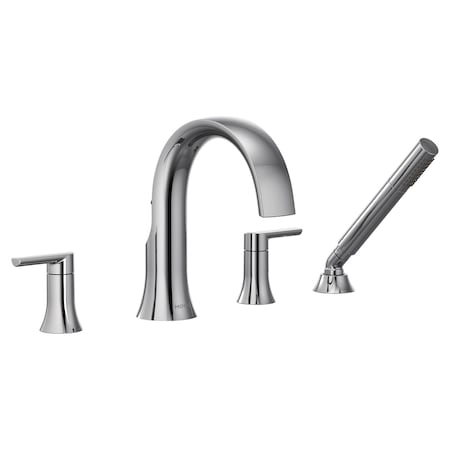 Moen TS983 Doux Two-Handle High Arc Deck-Mount Roman Tub Faucet Trim with Handshower, Valve Required, Chrome