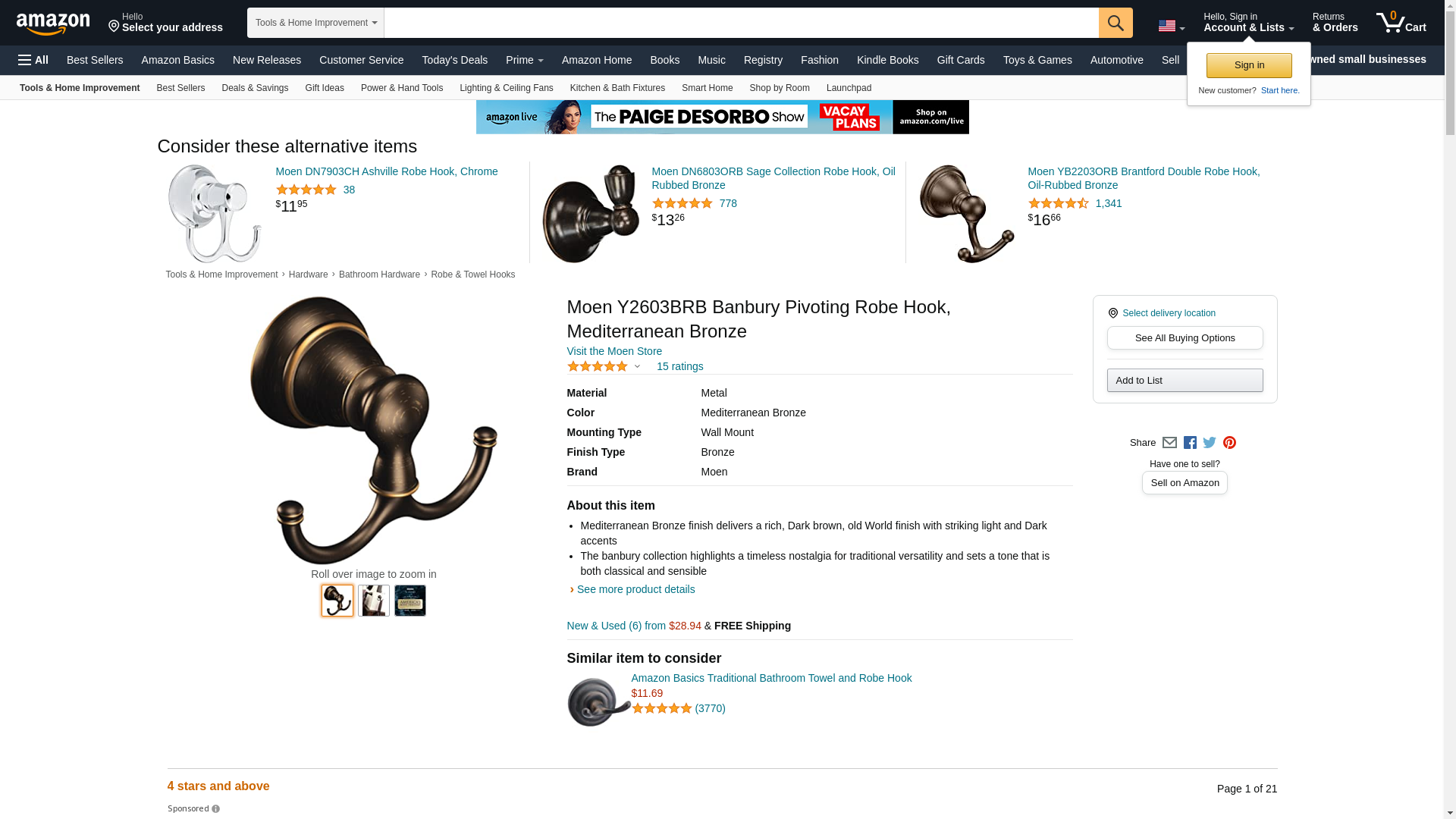 | Feature | Bath Accessory Type: Robe Hook: Color Family: Bronze |