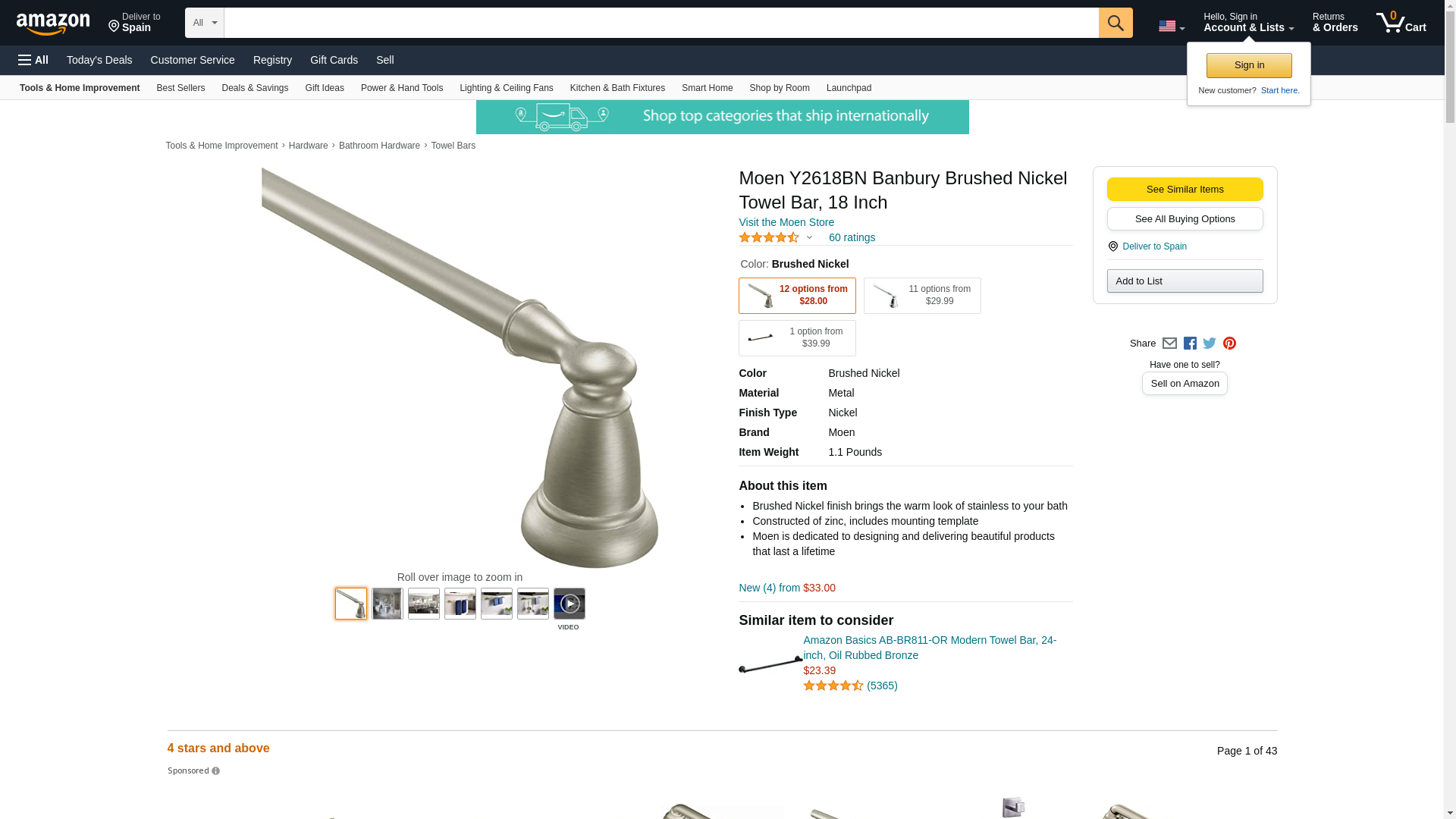 Moen Brushed Nickel Y2618BN Banbury Towel Bar, 18 Inch