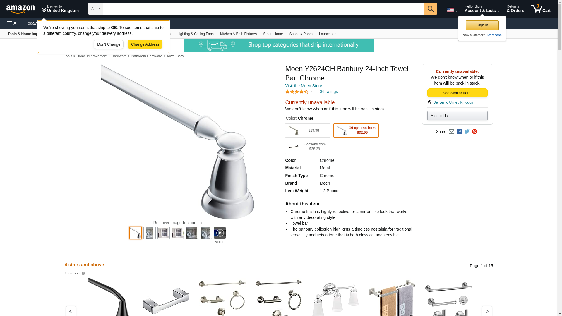 Moen 24in Chrome Finish Banbury Towel Bar (Y2624CH). More details: Sub Brand: Banbury Finish: Chrome Product Type: To...