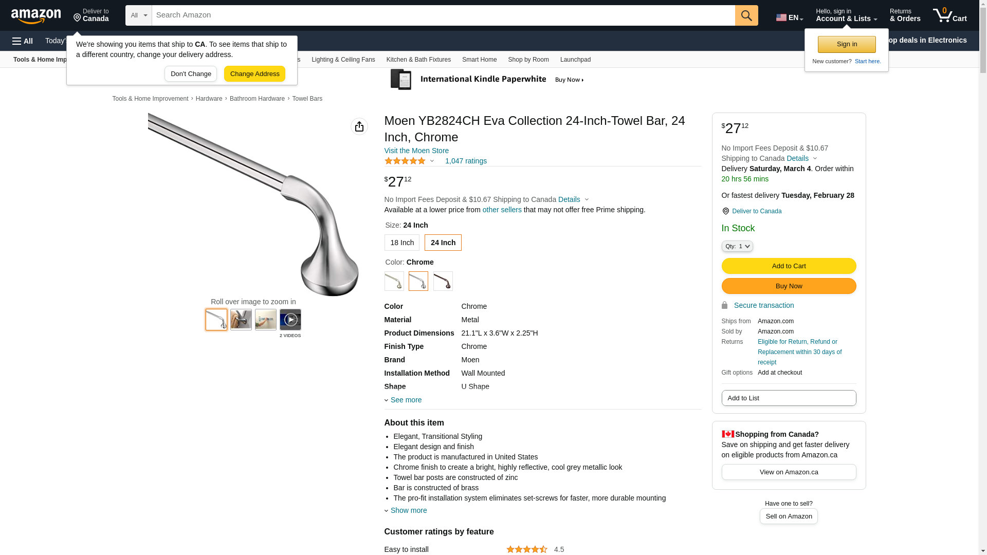 Moen YB2824CH Eva Collection 24-Inch-Towel Bar, 24 Inch, Chrome