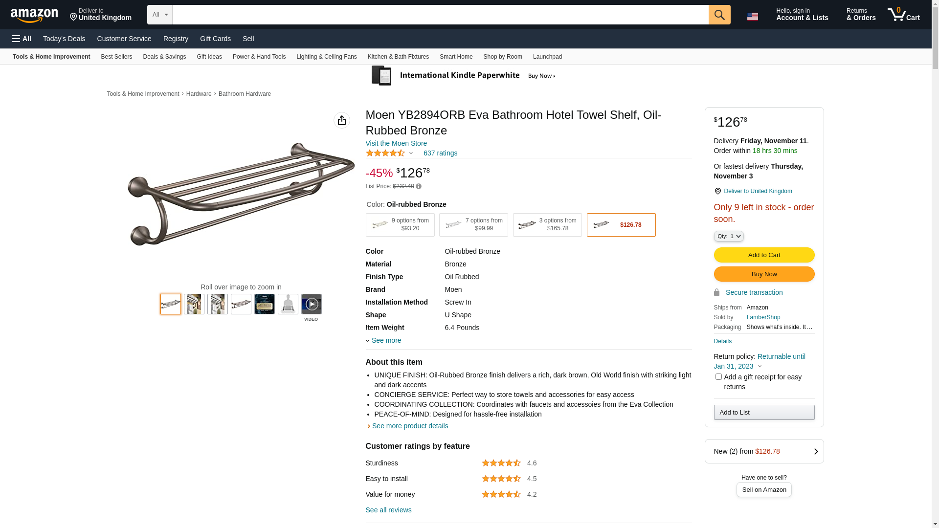| Feature | Eva Bathroom hotel towel shelf offers an elegant, organic look |