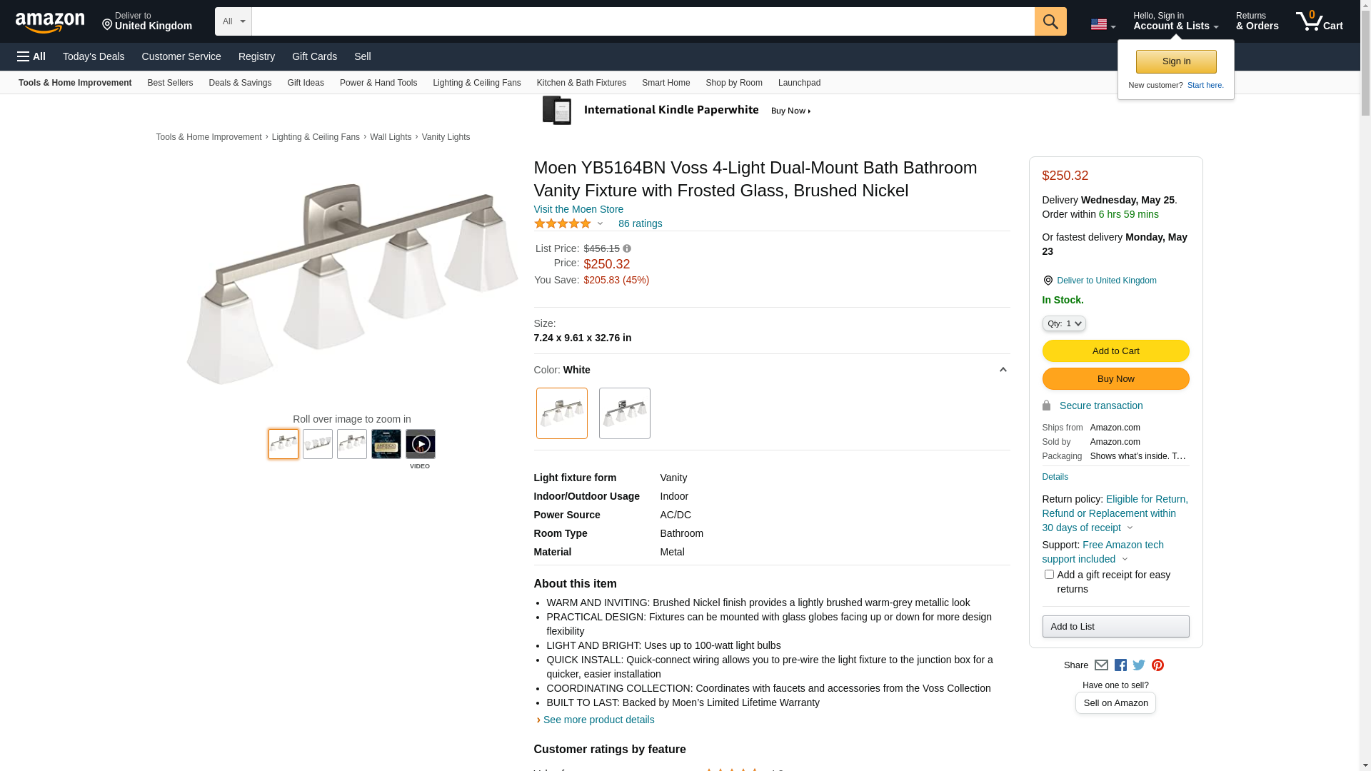 Moen Voss Brushed Nickel Modern 4-Light Dual-Mount Bath Bathroom Vanity Fixture with Frosted Glass, YB5164BN,White, 7.24 x 9.61 x 32.76 in