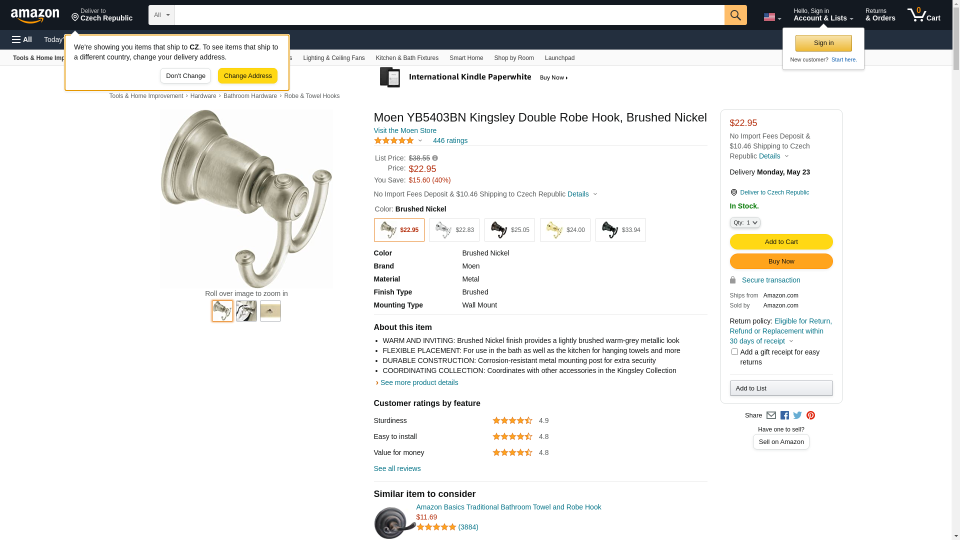 | Feature | Bath Accessory Type: Robe Hook: Color Family: Nickel |