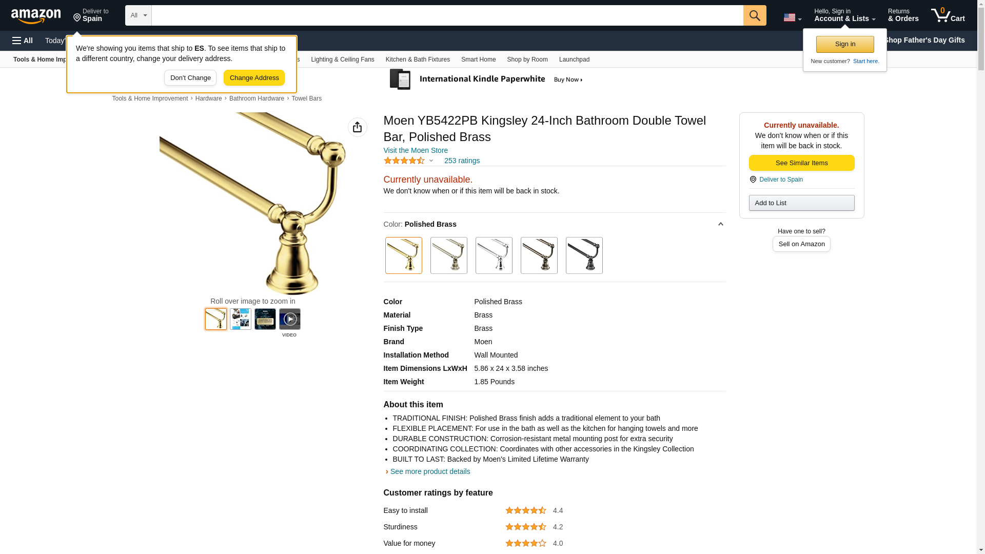 Moen YB5422PB Kingsley 24-Inch Bathroom Double Towel Bar, Polished Brass
