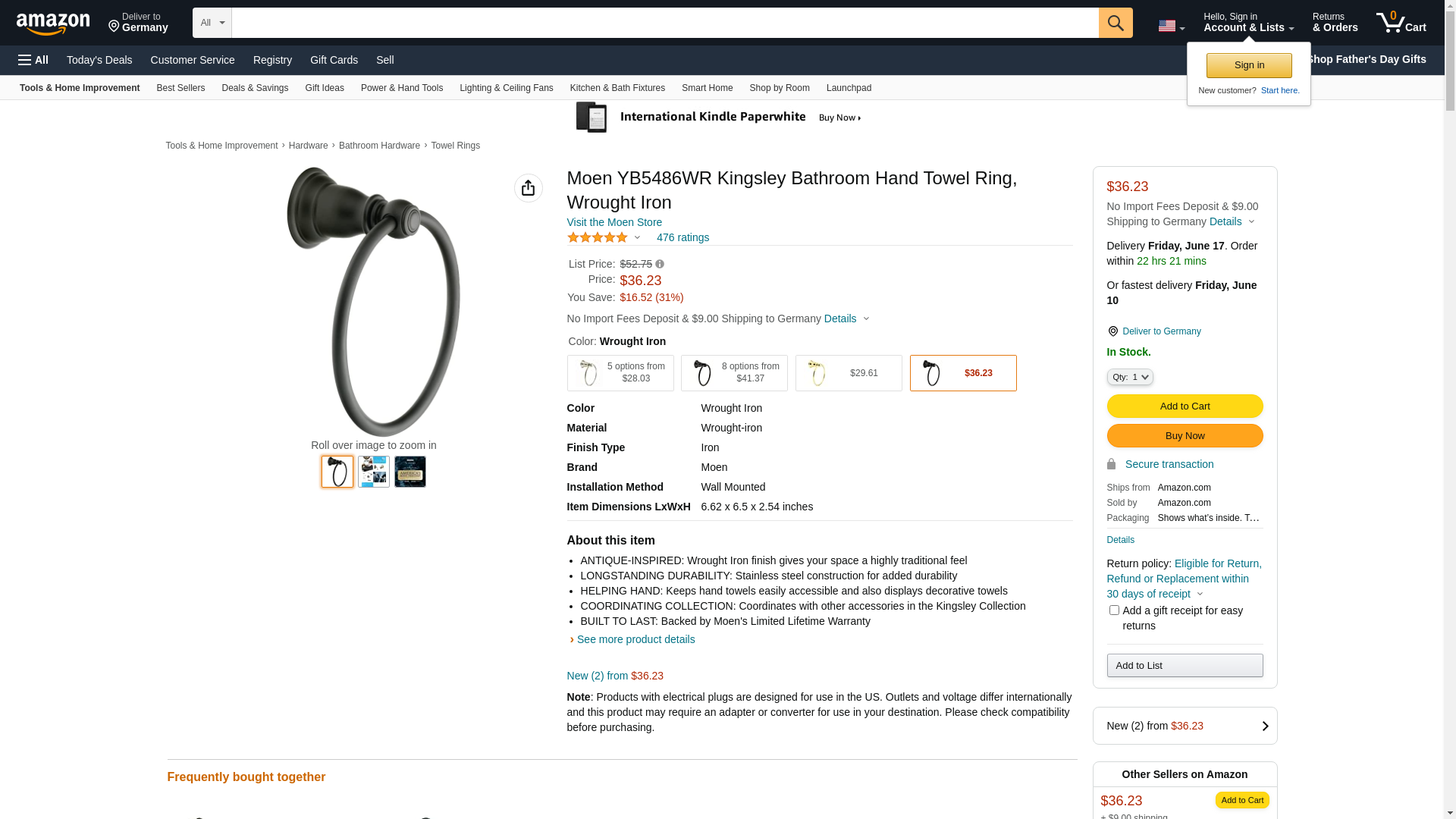 Moen YB5486WR Kingsley Bathroom Hand -Towel Ring, Wrought Iron