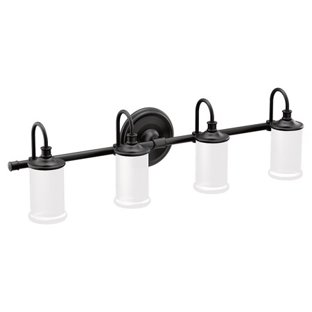 Moen YB6464BL Belfield 4-Light Dual-Mount Bath Bathroom Vanity Light Fixture with Frosted Glass, Matte Black
