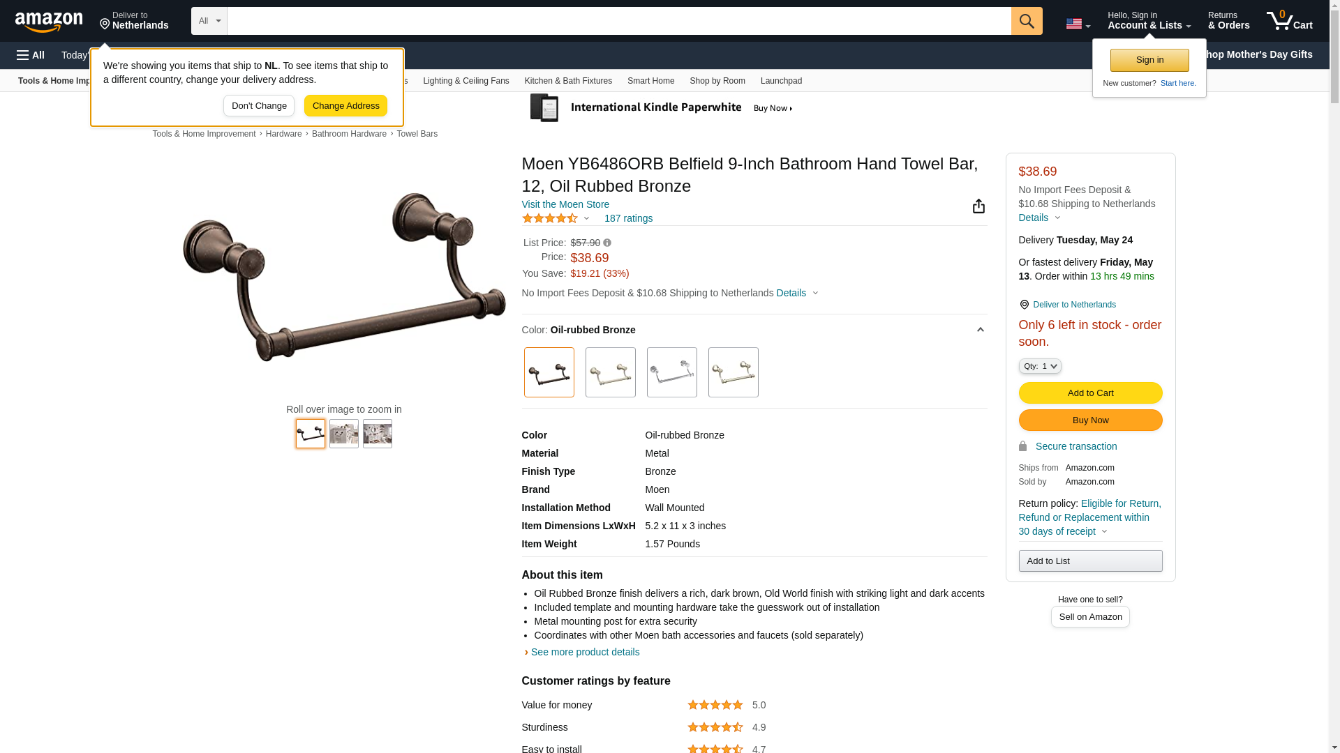 - Coordinates with other Moen bath accessories and faucets (sold separately)