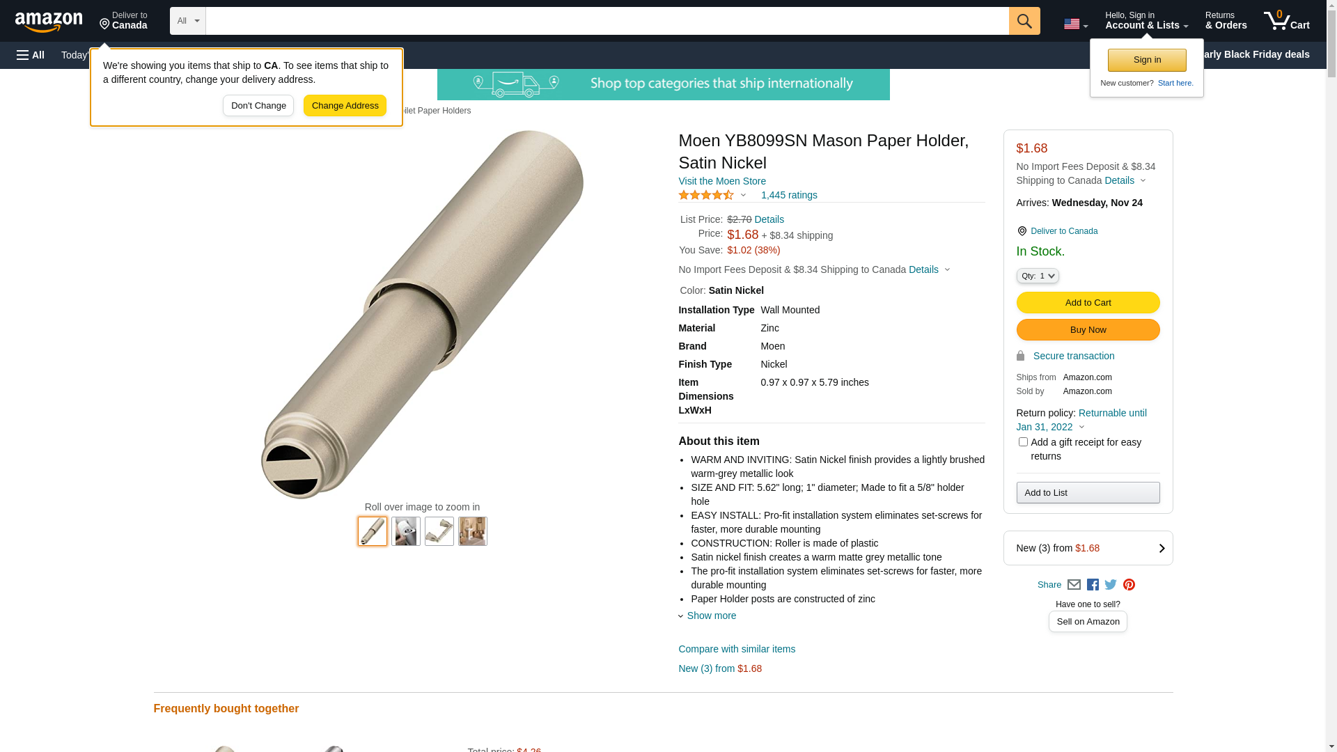 | MOEN-YB8099 | 1 | 1 | 1 @ $2.28 |
