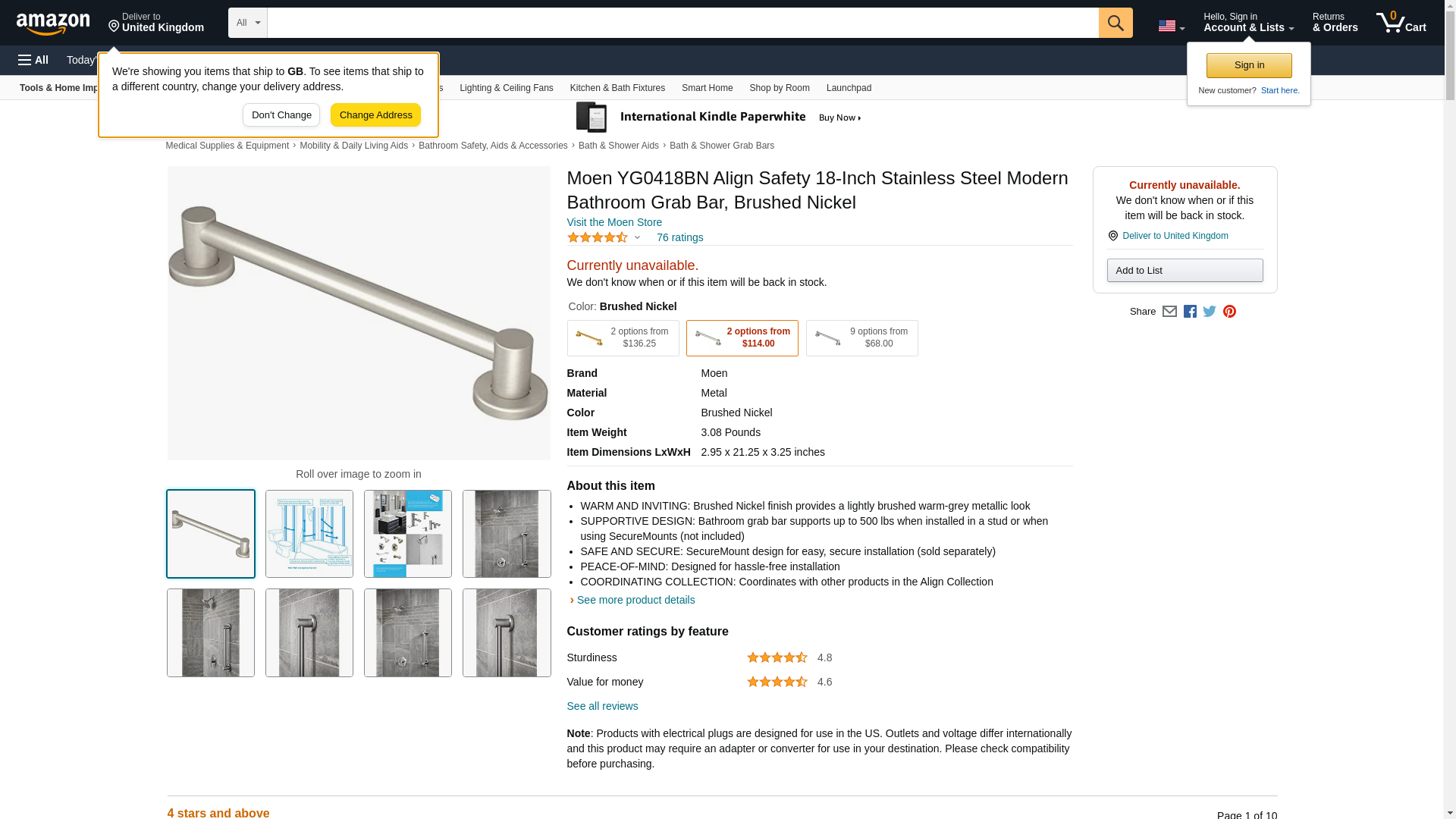 Moen YG0418BN Align Safety 18-Inch Stainless Steel Modern Bathroom Grab Bar, Brushed Nickel