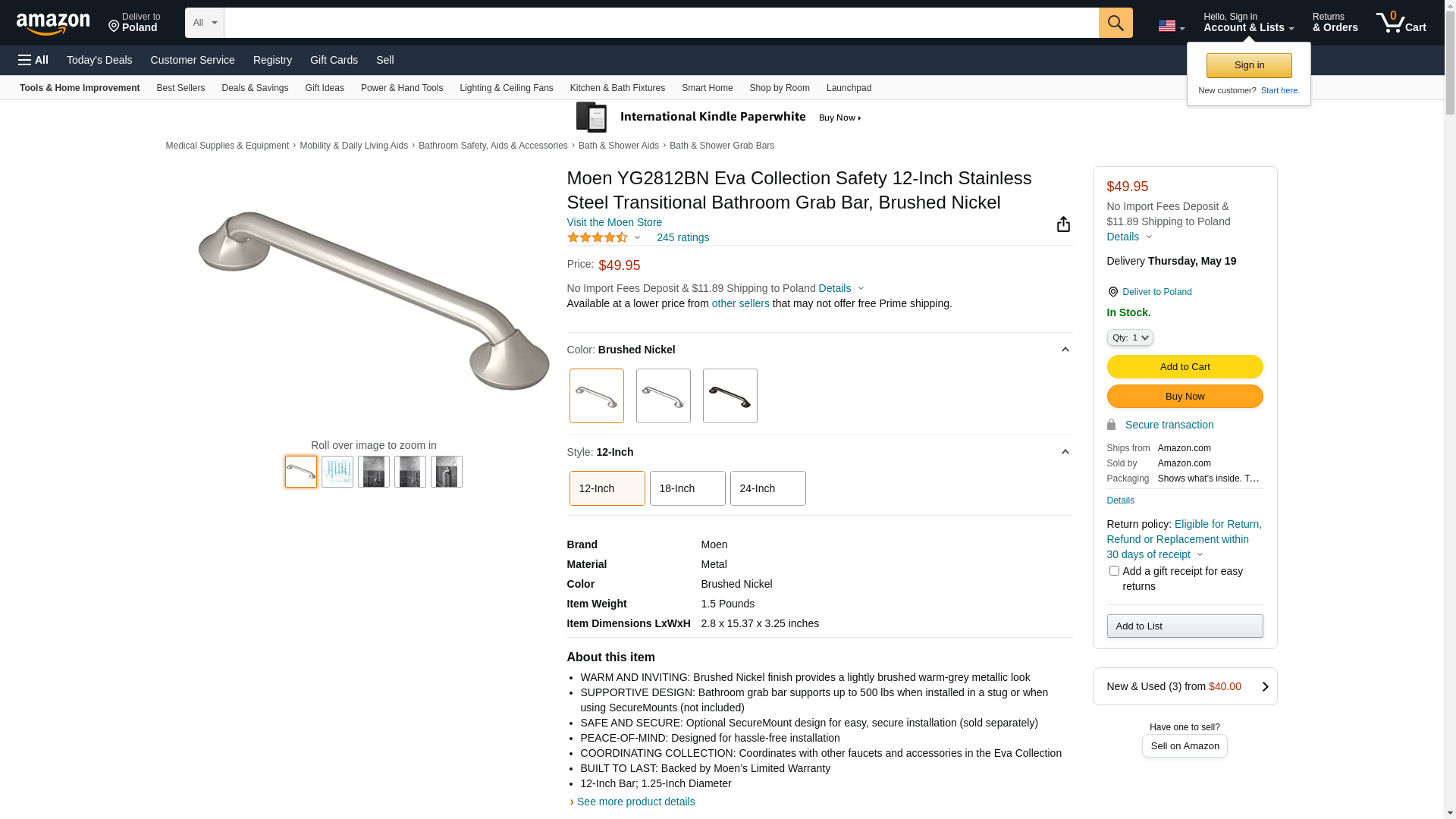 Moen YG2812BN Eva Collection Safety 12-Inch Stainless Steel Transitional Bathroom Grab Bar, Brushed Nickel