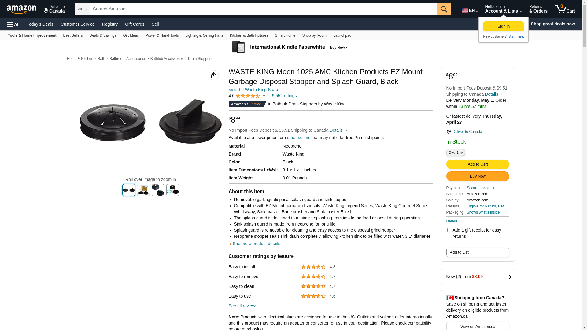 WASTE KING Moen 1025 AMC Kitchen Products EZ Mount Garbage Disposal Stopper and Splash Guard, Black