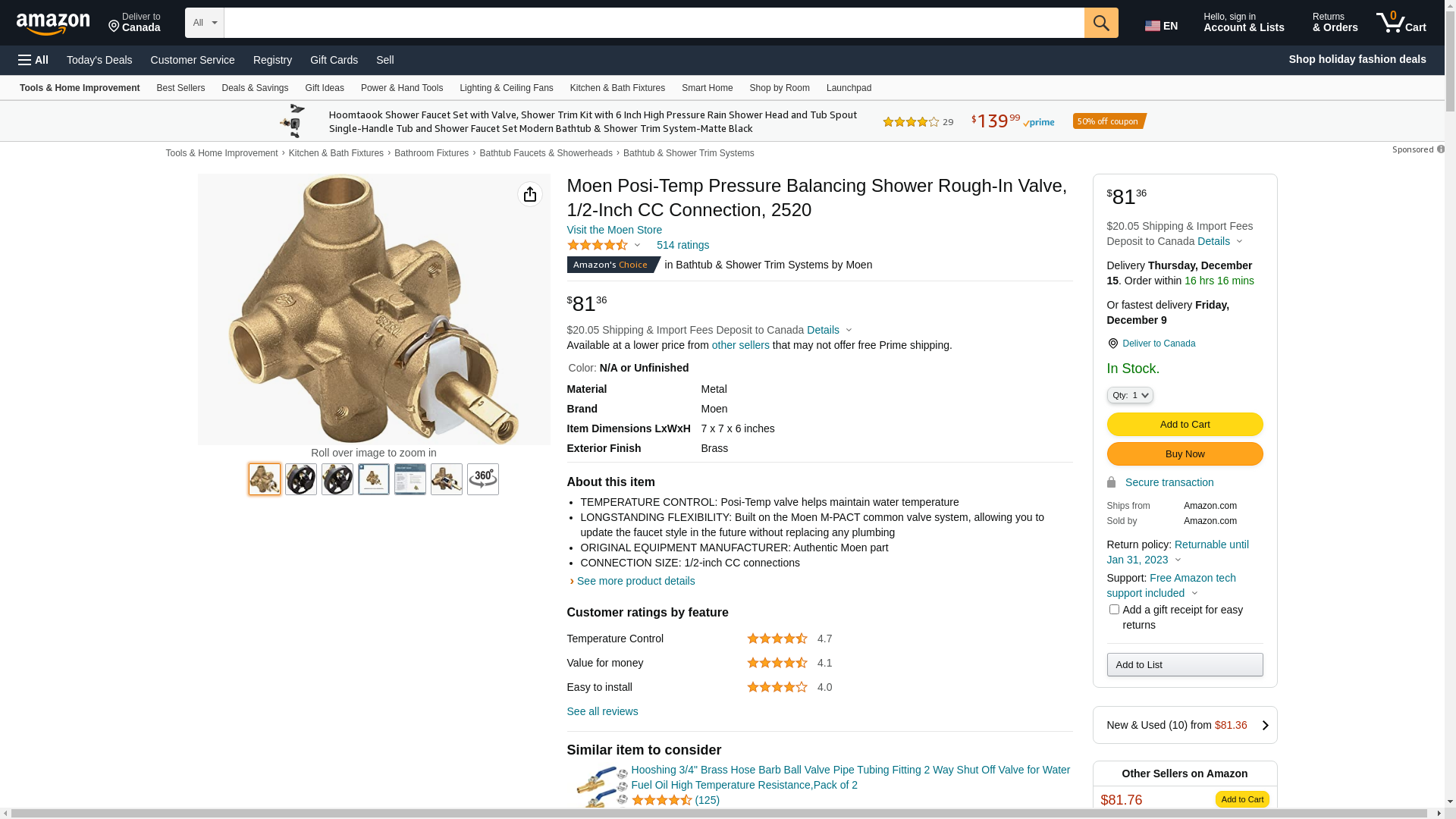 Moen 2520 Posi-Temp Pressure Balancing Shower Rough-In Valve, 1/2-Inch CC Connection