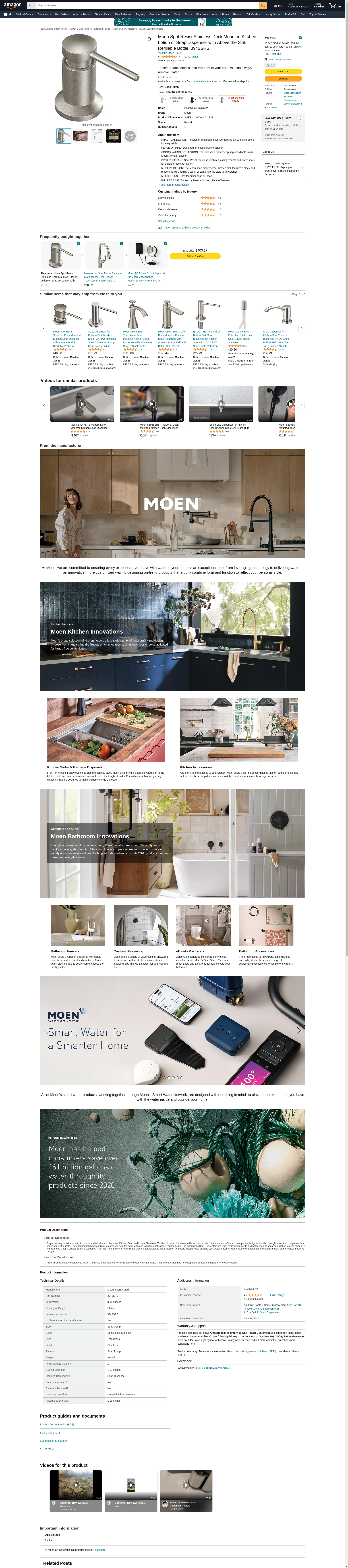 Moen 3942SRS Kitchen Soap and Lotion Dispenser, Spot Resist Stainless
