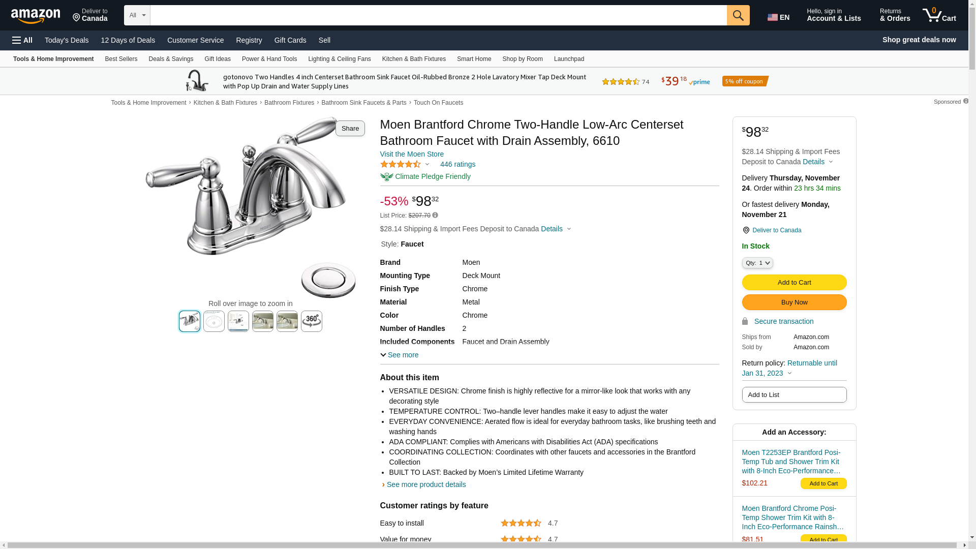 Moen 6610 Brantford Two-Handle Low-Arc Centerset Bathroom Faucet with Drain Assembly, Chrome