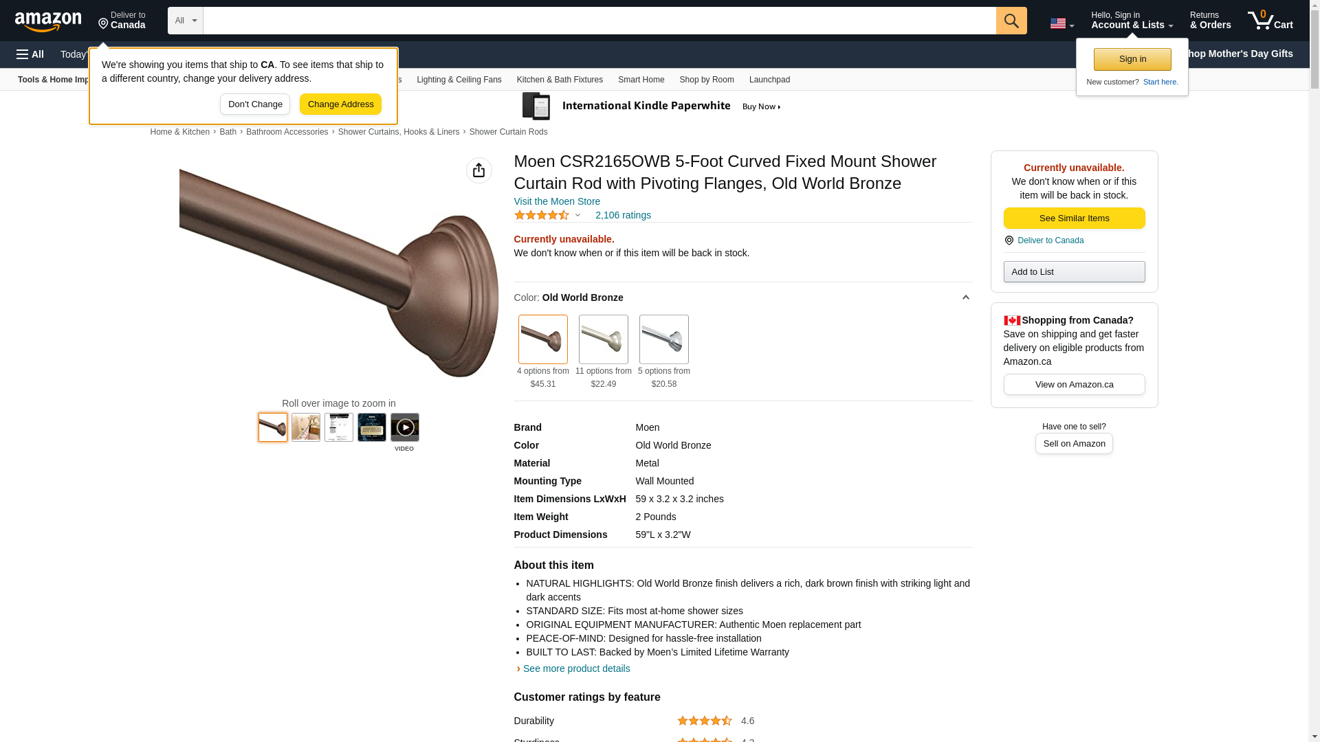 Moen CSR2165OWB 5-Foot Curved Fixed Mount Shower Curtain Rod with Pivoting Flanges, Old World Bronze