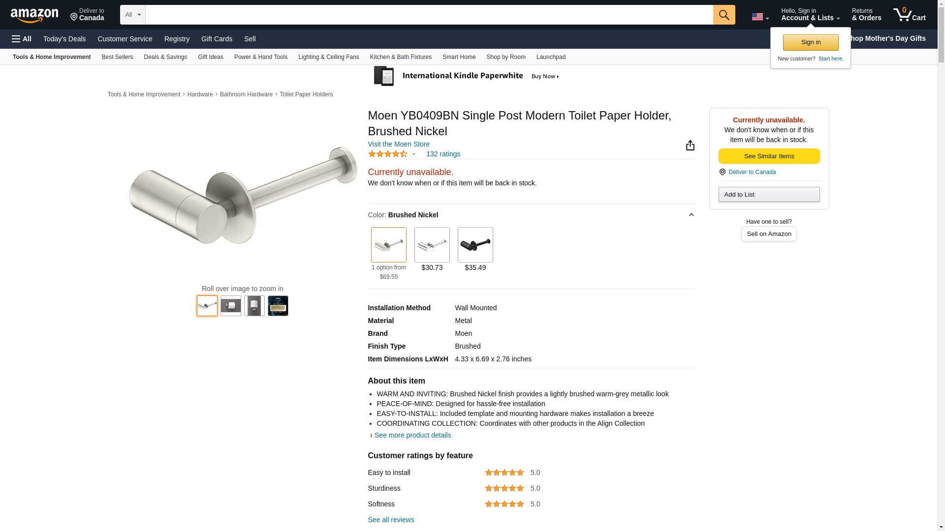 | Feature | Brushed nickel finish brings the warm look of stainless to your bath |