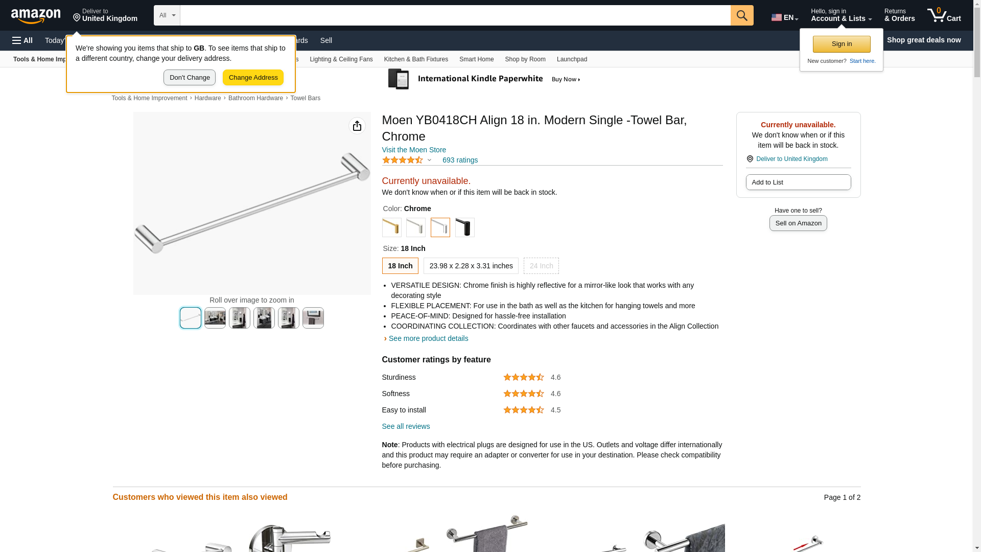 CSI YB0418CH Moen Align 18-Inch Bathroom Towel Bar, Chrome