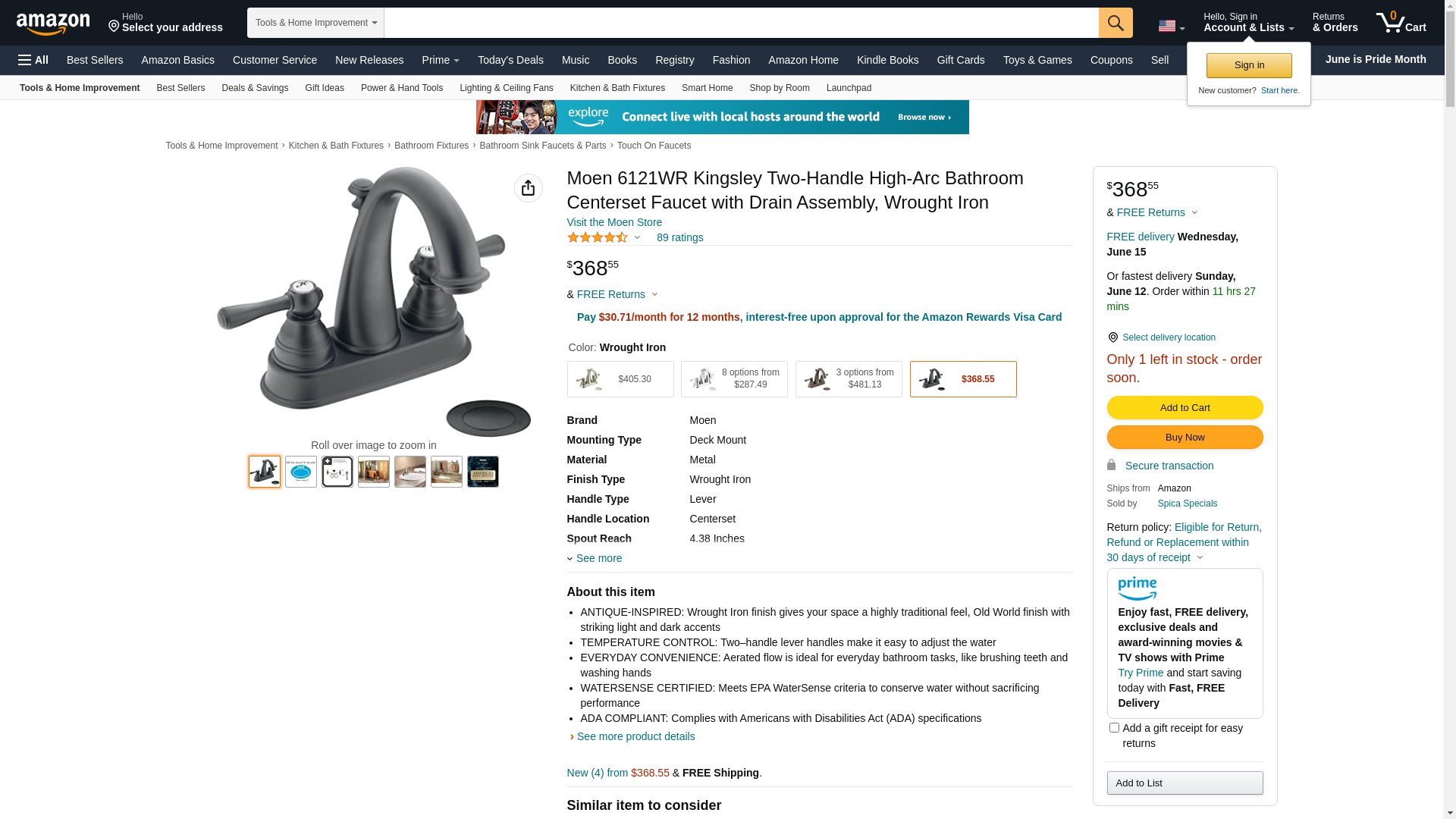 Moen 6121WR Kingsley Two-Handle High-Arc Bathroom Centerset Faucet with Drain Assembly, Wrought Iron