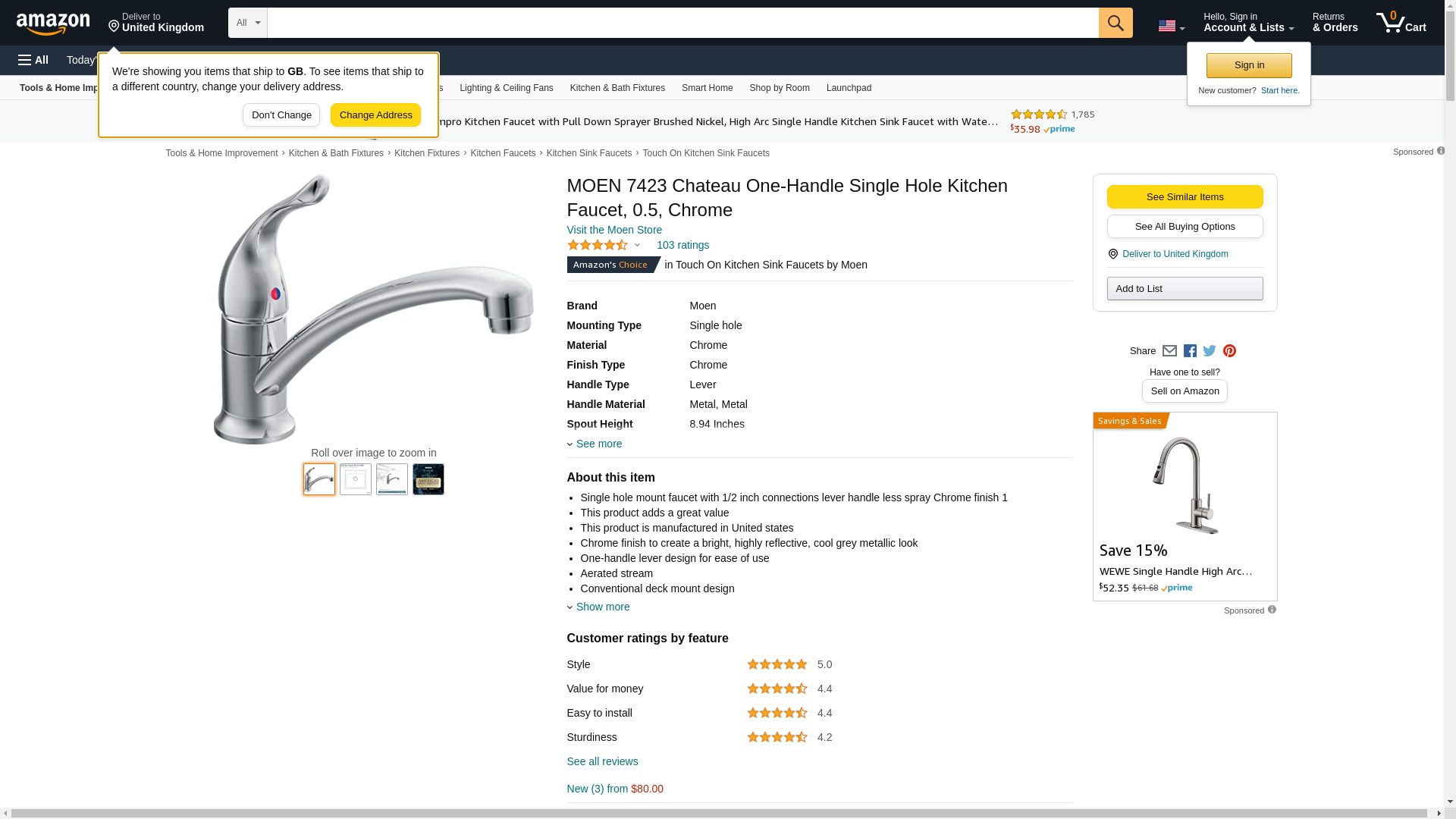 MOEN 7423 Chateau One-Handle Single Hole Kitchen Faucet, 0.5, Chrome