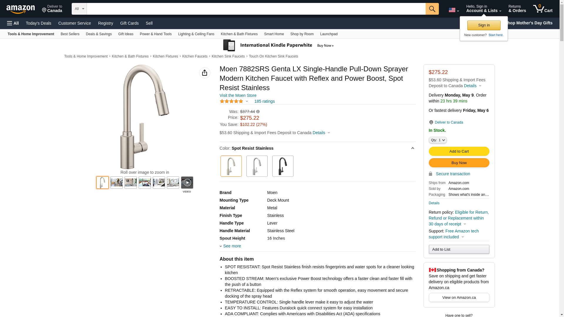Moen 7882SRS Genta LX Single-Handle Pull-Down Sprayer Modern Kitchen Faucet with Reflex and Power Boost, Spot Resist Stainless