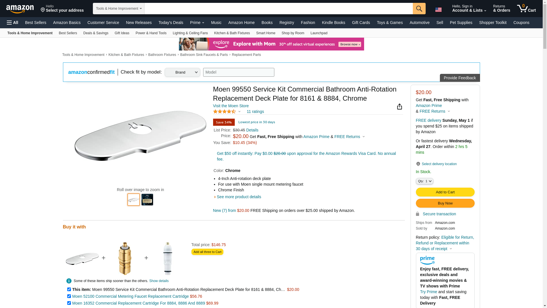 Moen 99550 Service Kit Commercial Bathroom Anti-Rotation Replacement Deck Plate for 8161 & 8884, Chrome