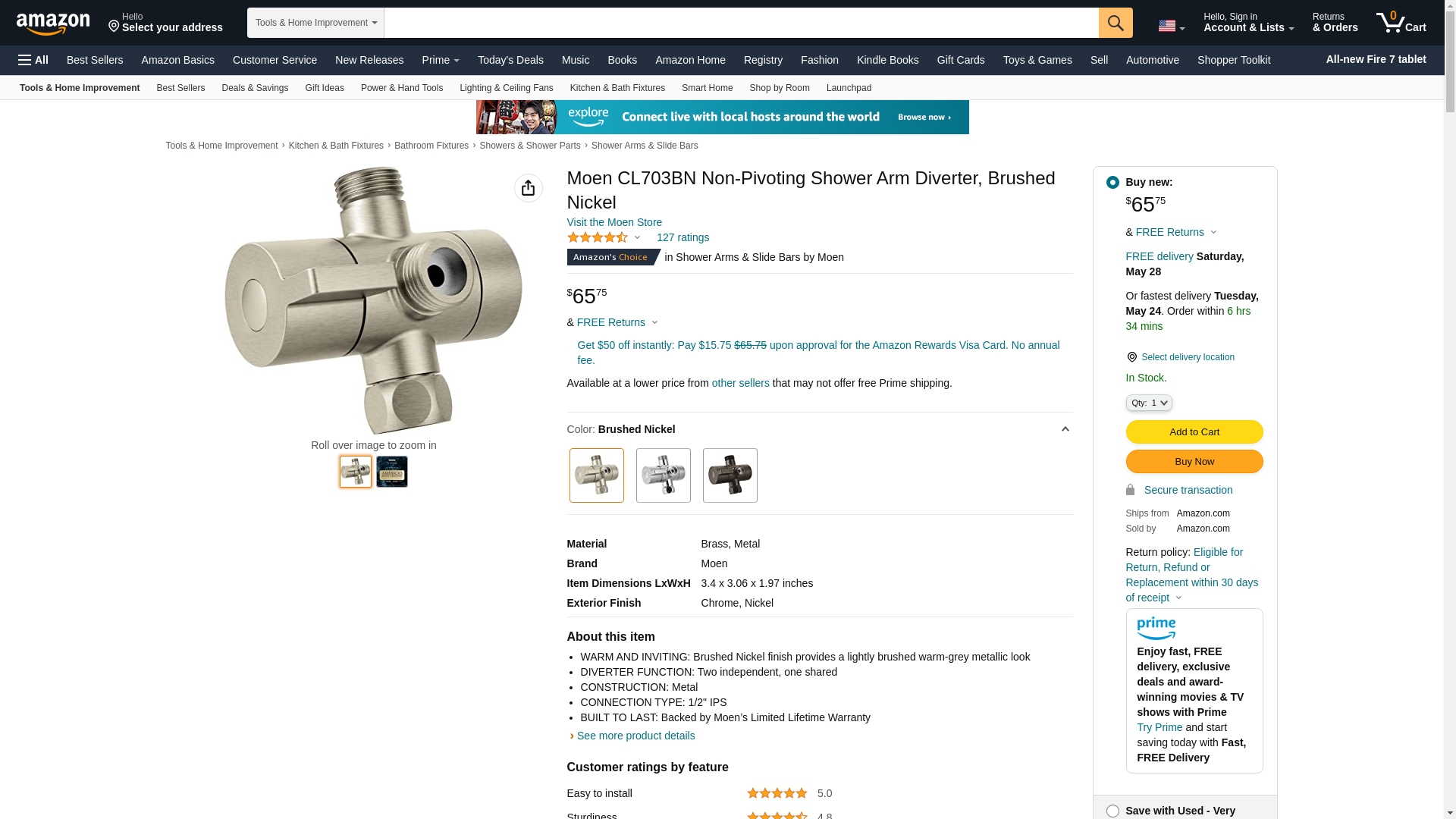 Moen CL703BN Non-Pivoting Shower Arm Diverter, Brushed Nickel