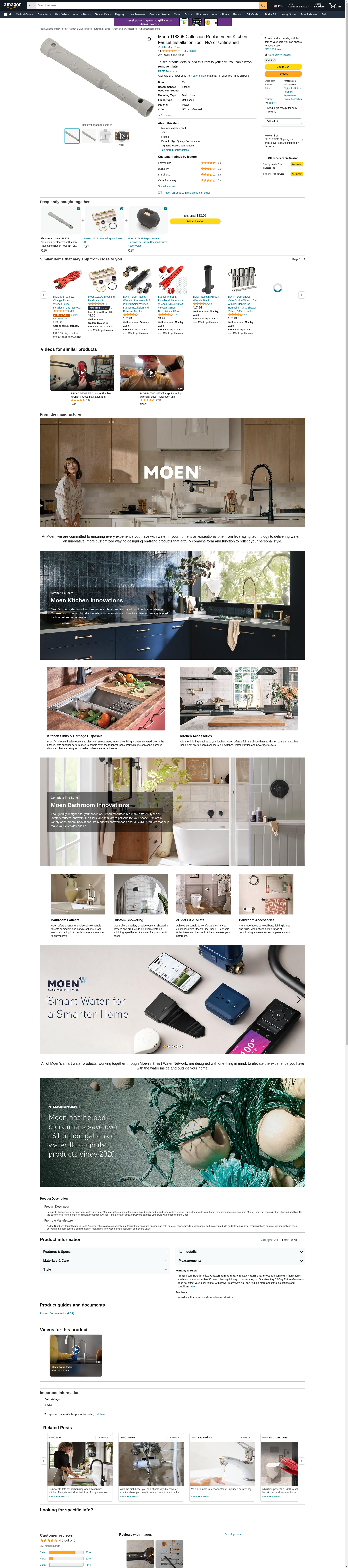 Moen 118305 Collection Replacement Kitchen Faucet Installation Tool, N/A or Unfinished