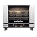 Turbofan Convection Oven, electric, countertop, 26" assembled height, (4) full-size sheet pan capacity, 3-1/8" tray spacing, digital display time & temperature controls, electronic thermostat range 150 - 500° F, 20 programs, electronic timer, stainless steel front, sides and top exterior, pull-down twin pane glass door, porcelain interior, 3" adjustable stainless steel feet