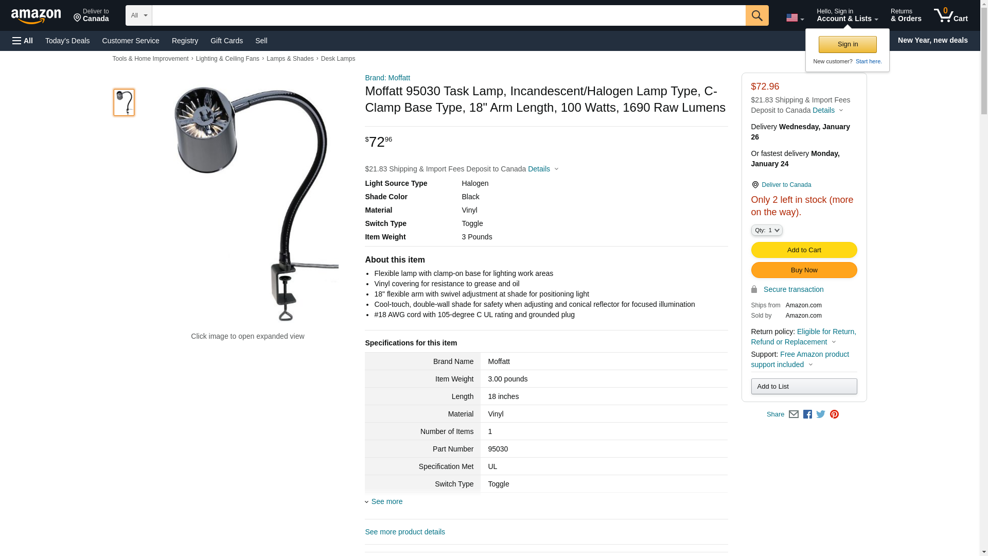 Moffatt C-Clamp Task Lamp, 95030, 18" Flex Arm