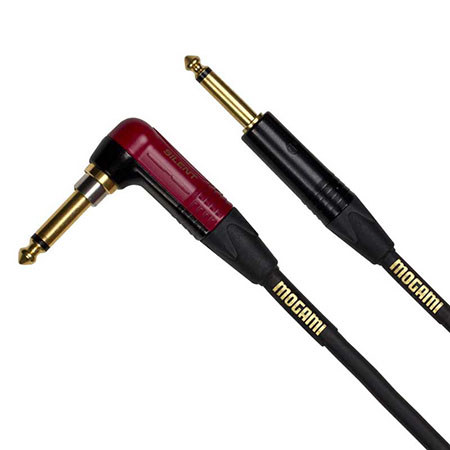 Mogami GOLD INST SILENT R-25 Guitar Instrument Cable, 1/4" TS Male Plugs, Gold Contacts, Right Angle silentPLUG to Straight Connectors, 25 Foot