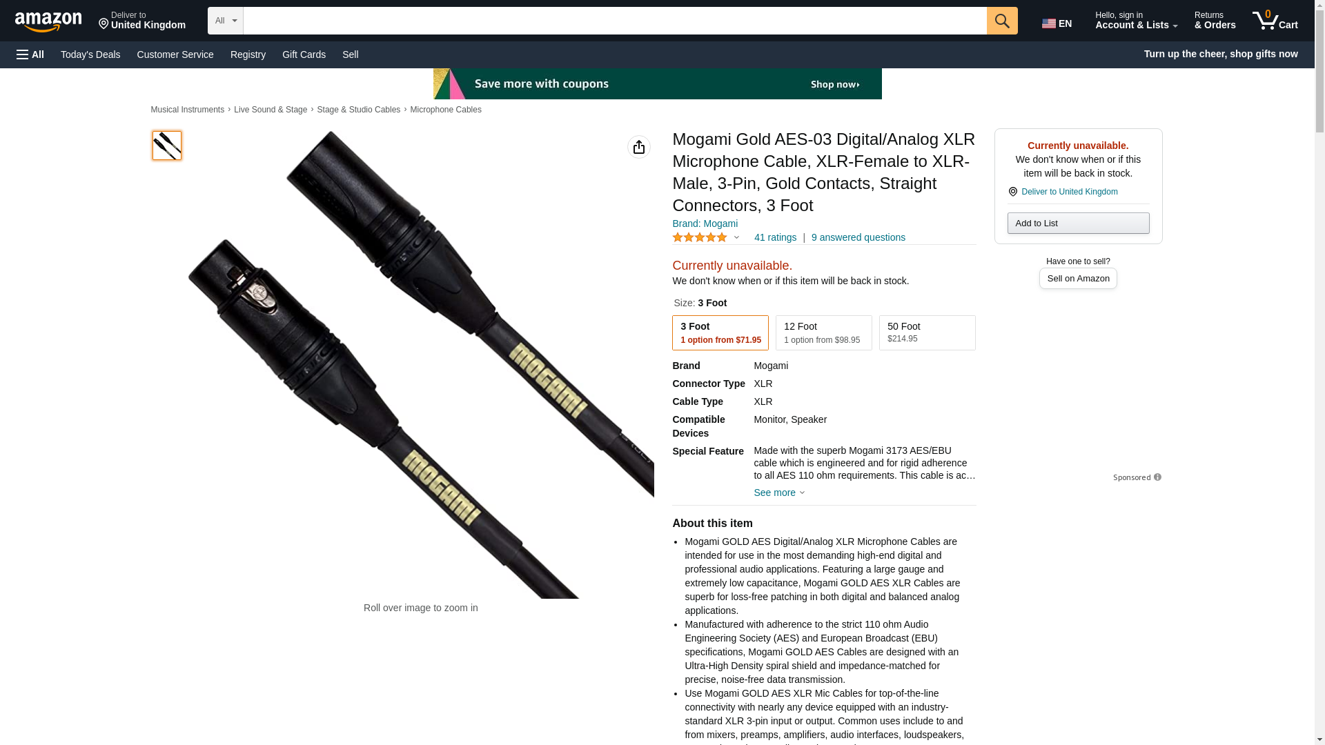 - This Mogami GOLD AES-06 Digital/Analog XLR Microphone Cable is a 6 foot length. The Mogami GOLD AES Digital/Analog XLR Microphone Cable series is also available in 3, 12, 20, 25, and 50 foot lengths.