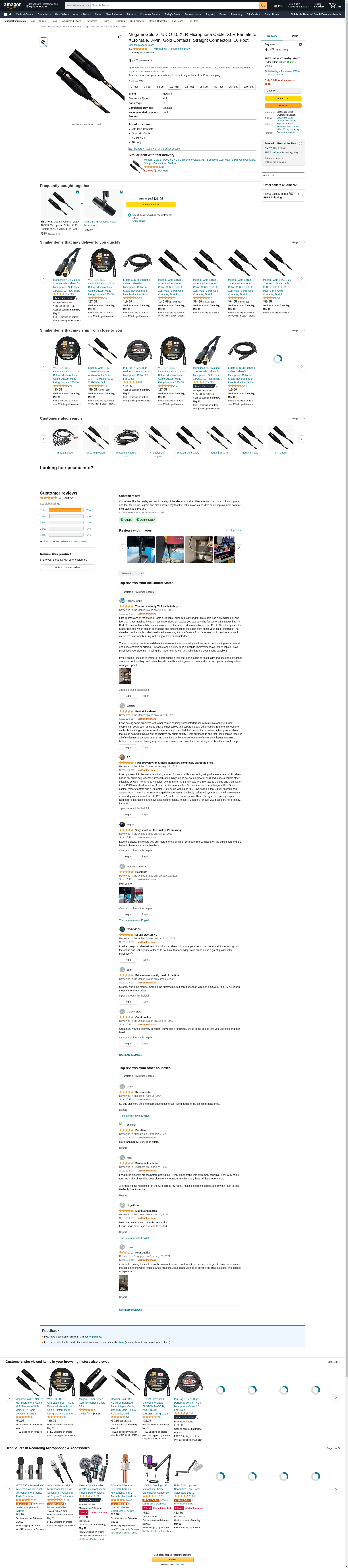 | Feature | From large recording facilities to small project studios, engineers and artists trust Mogami GOLD STUDIO XLR Microphone Cables for professional results. Engineered to provide an enhanced dynamic range with a pin-drop quiet recording environment, Mogami GOLD STUDIO XLR Microphone Cables help to cure many of the problems encountered in a typical project or home studio. |
