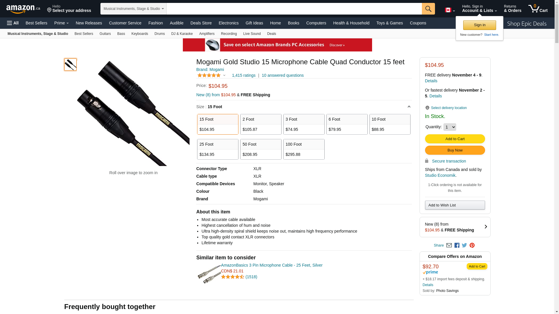 | Manufacturer | Mogami Cable |