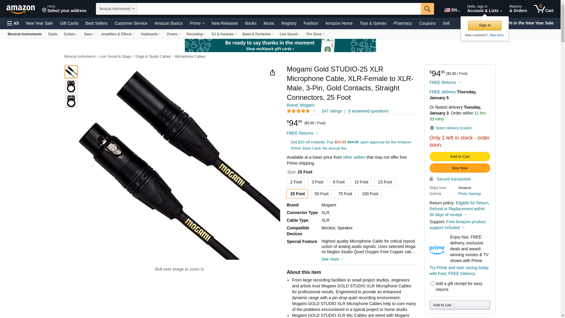 | Manufacturer | Mogami Cable |